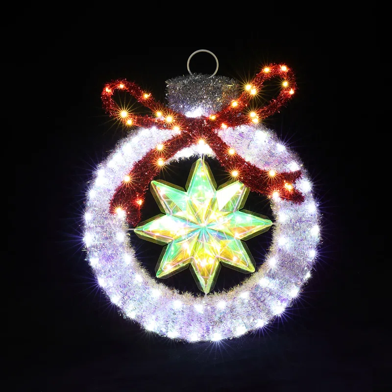 - Shimmering Star Design: Silver tinsel wreath with a dazzling iridescent 3D star centerpiece that reflects rainbow colors, accented with a festive red bow for a unique holiday look.